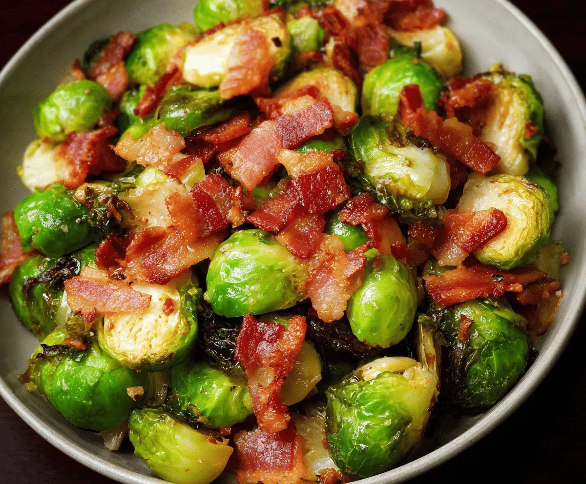 Bacon Brussels Sprouts are a simple, tasty side dish that brings together crispy, salty bacon and tender, caramelized Brussels sprouts. The combination of crunchy bacon bits and the slightly sweet, roasted sprouts makes every bite a small celebration of flavors and textures.