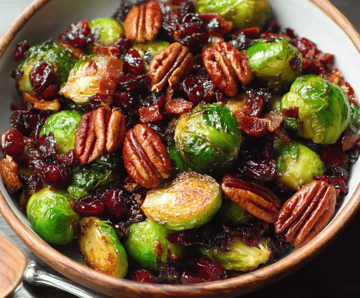 Brussels Sprouts with Bacon, Pecans, Cranberries, and Balsamic Glaze
