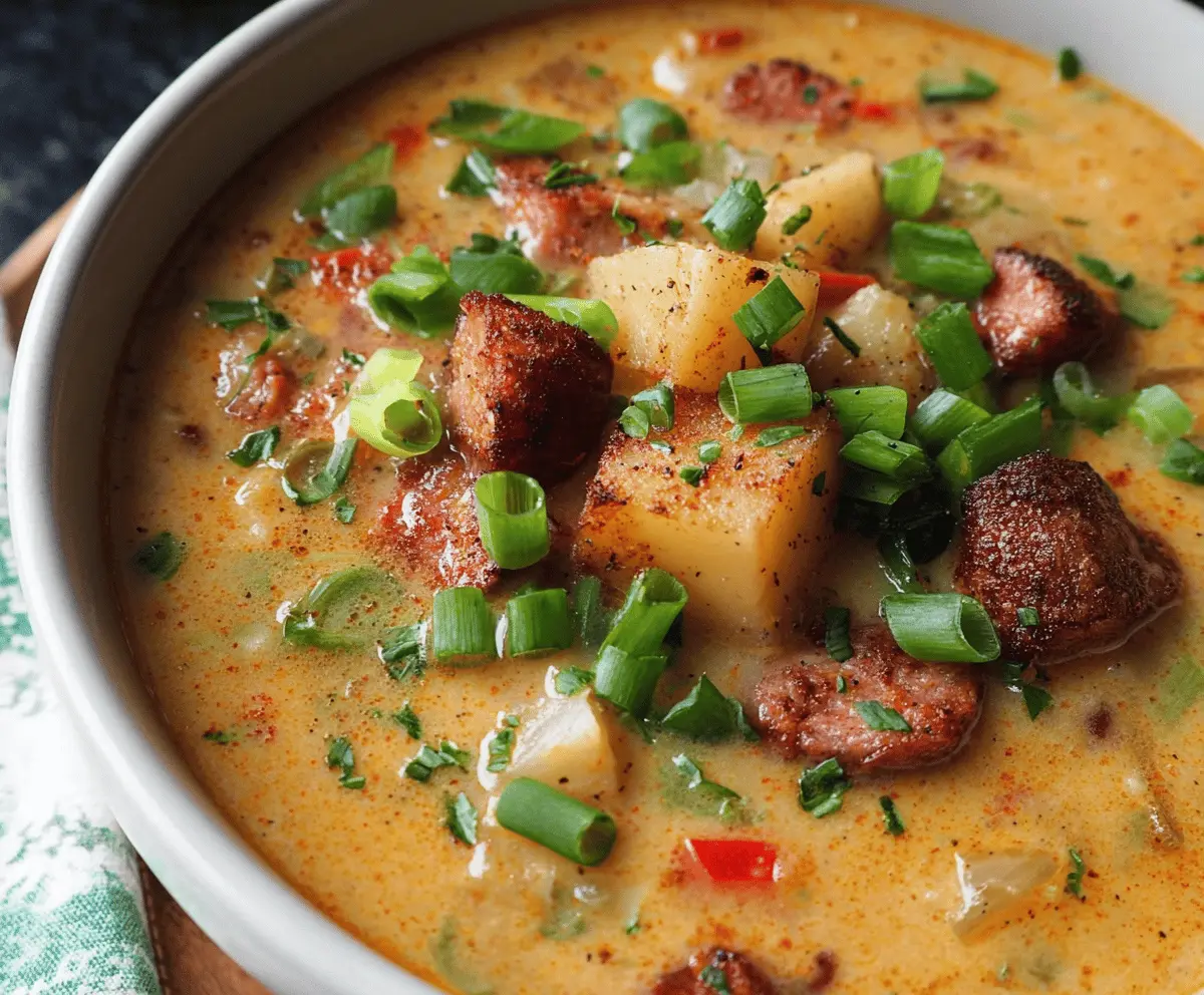 Cajun Potato Soup is a hearty, flavorful dish packed with tender potatoes, a touch of creaminess, and that bold Cajun spice that gives it a little kick. You can expect a comforting bowl filled with smoky sausage, vibrant peppers, and a warm blend of seasonings that make every spoonful satisfying and cozy.