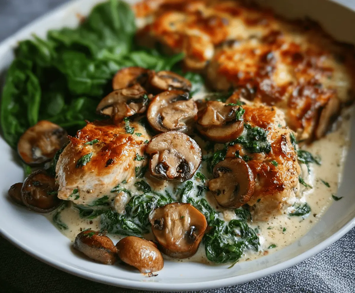 I love making this bake when I want something that’s easy to throw together but still feels like homemade comfort food. The combination of spinach and mushrooms gives it a nice balance between freshness and richness, and the chicken stays juicy and tender. I usually stir in a bit of cheese before baking to add that extra melty goodness—it’s a small detail, but it really changes the game.