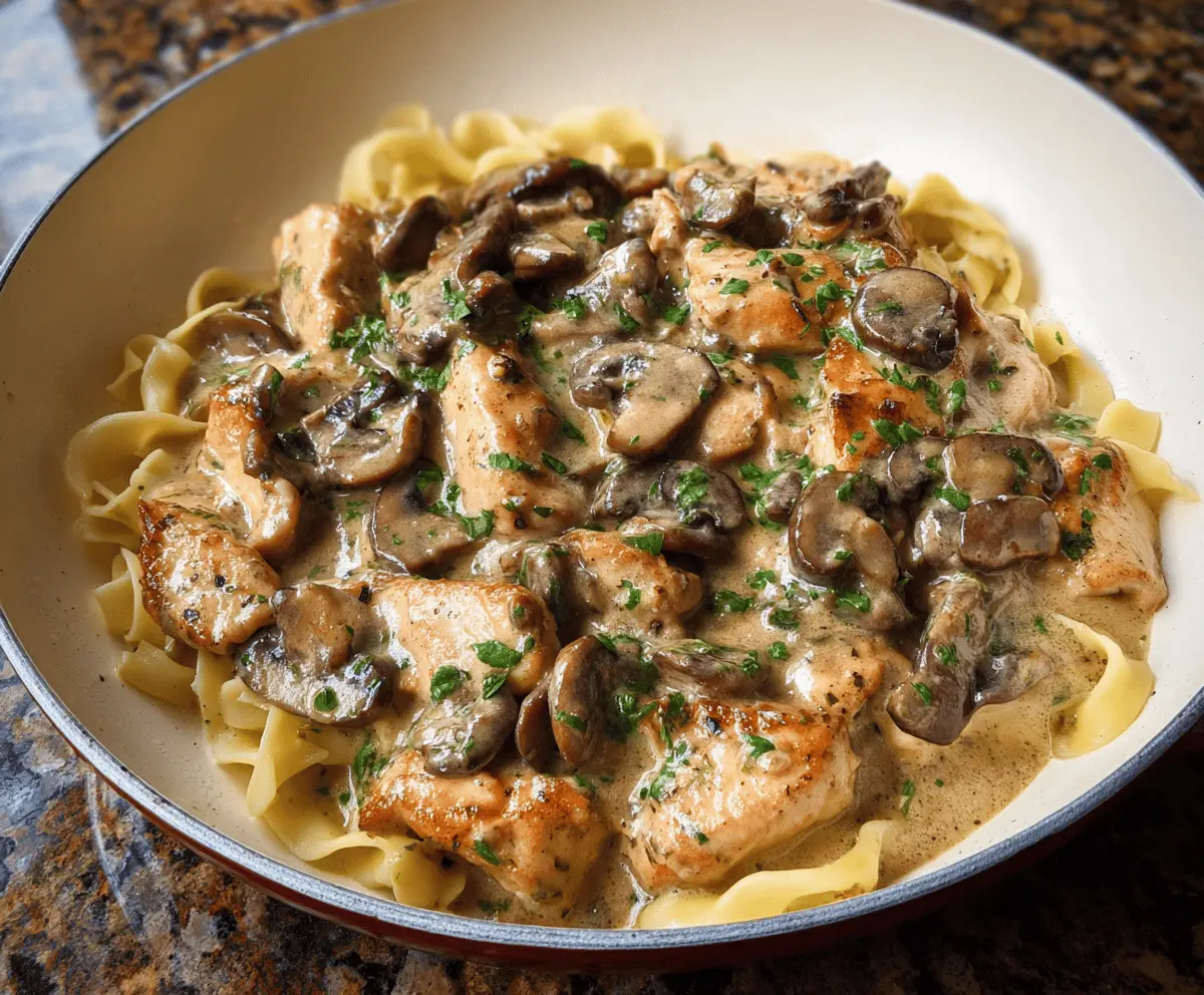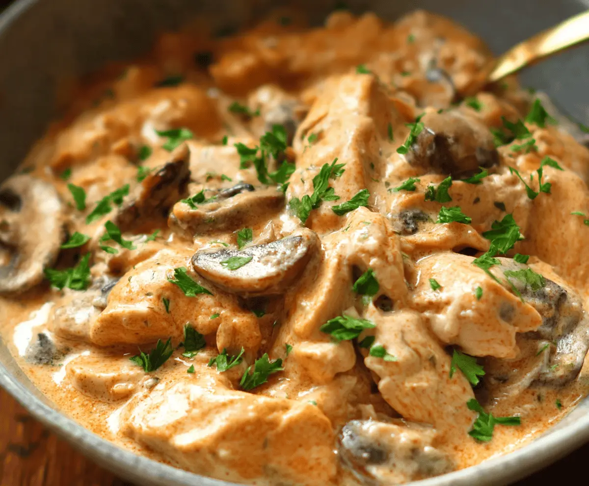 Chicken Stroganoff is a creamy and comforting dish that blends tender pieces of chicken with mushrooms and onions, all simmered in a rich sour cream sauce. The flavors are simple but hearty, making it a perfect meal for any day you want something warm and satisfying without too much fuss.