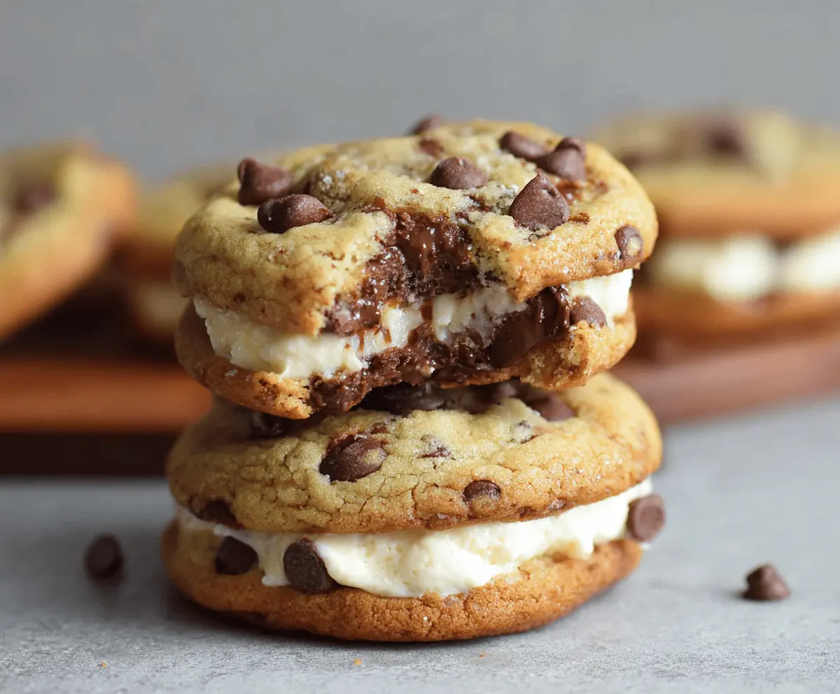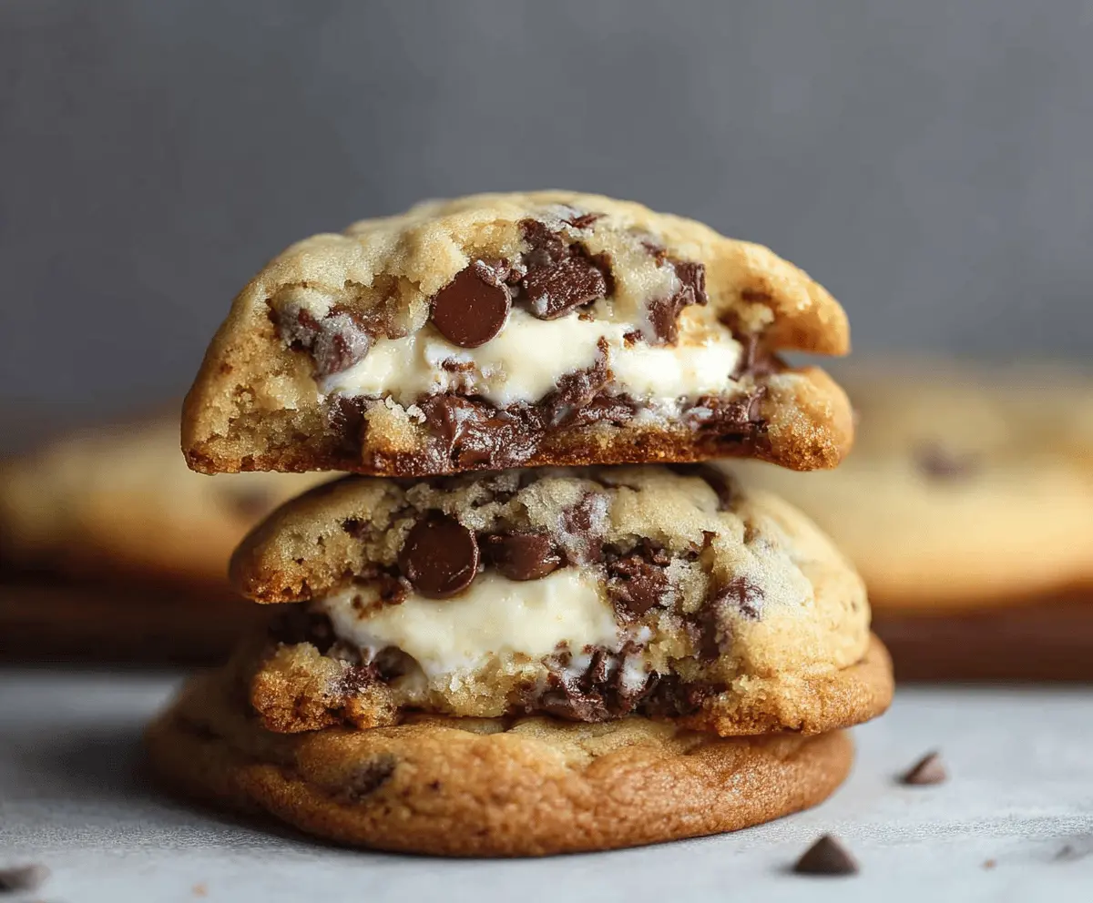 Chocolate Chip Cookies with Creamy Cheesecake Filling is a sweet treat that brings together the best of two worlds: soft, chewy chocolate chip cookies and a rich, creamy cheesecake filling sandwiched right in the middle. The cookies have that classic buttery flavor with melty chocolate chips, while the cheesecake filling adds a smooth and tangy contrast that makes every bite extra special.