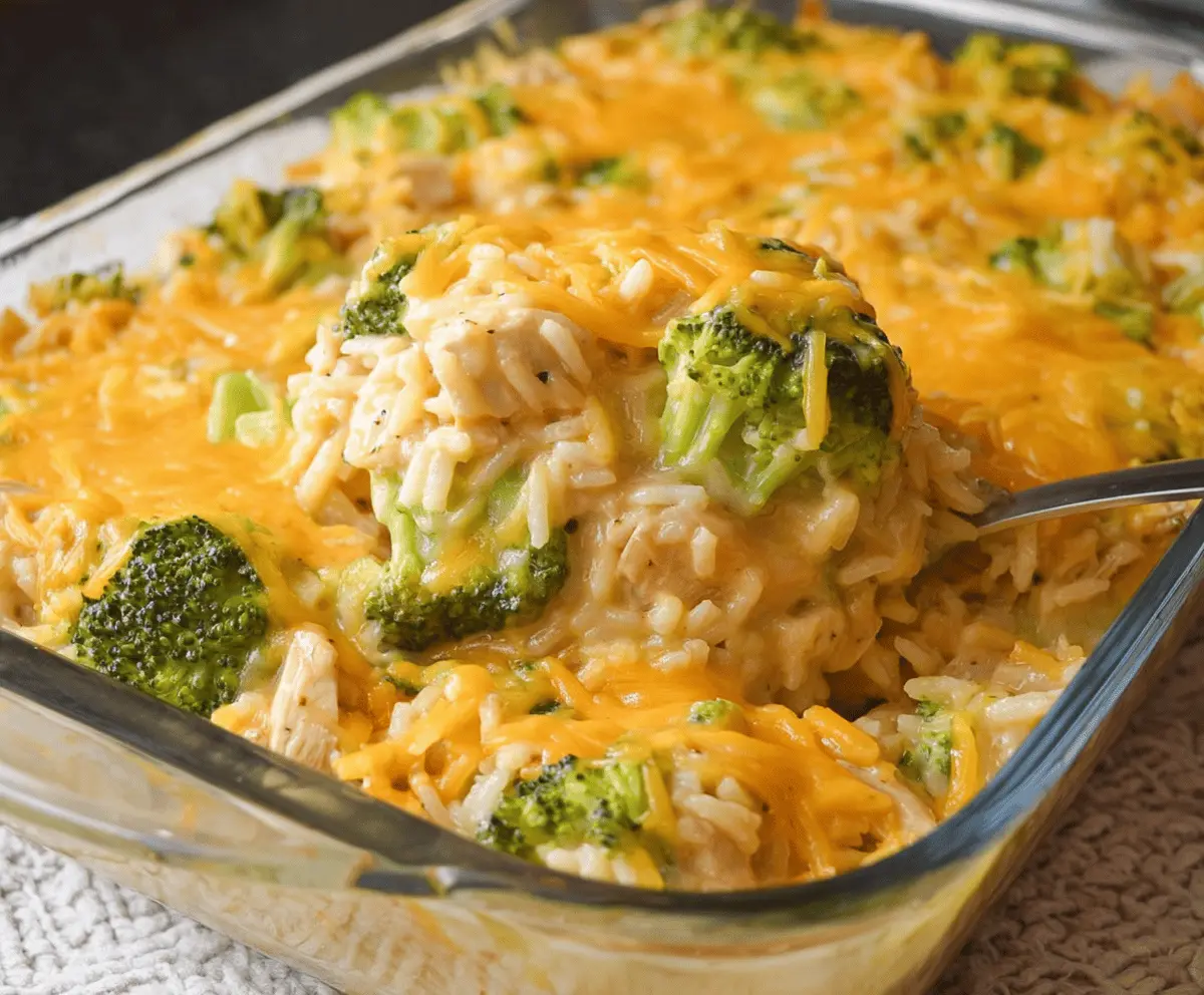 Creamy Chicken Broccoli Rice Cheese Casserole