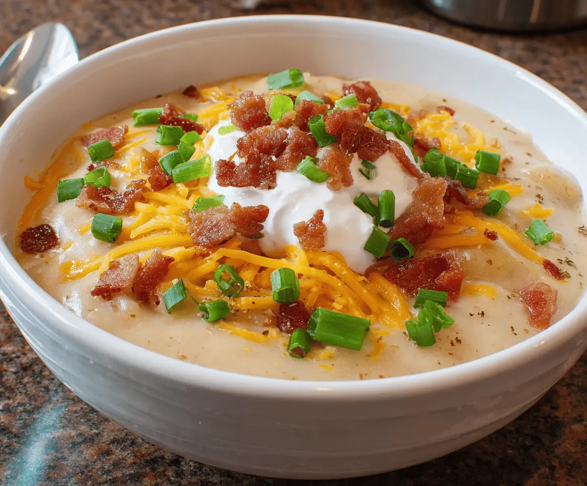 Crockpot Loaded Baked Potato Soup is a warm, comforting bowl filled with tender potatoes, melted cheese, crispy bacon, and creamy sour cream. It’s the kind of soup that feels like a hug on a chilly day, with all the flavors of a classic loaded baked potato turned into a smooth, hearty soup.