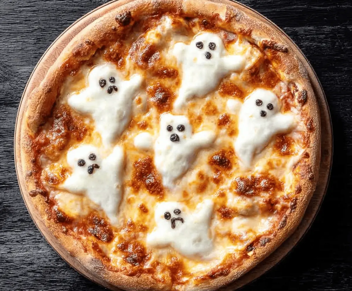 Ghost Pizza is a fun and spooky twist on your classic pizza, perfect for Halloween or any time you want to add a little mystery to your meal. It usually features a regular crust topped with tomato sauce, melted cheese, and little ghost-shaped pieces made from dough or cheese that look like friendly little spirits floating on your pizza. The contrast between the gooey cheese and crispy crust makes it super tasty and fun to eat.