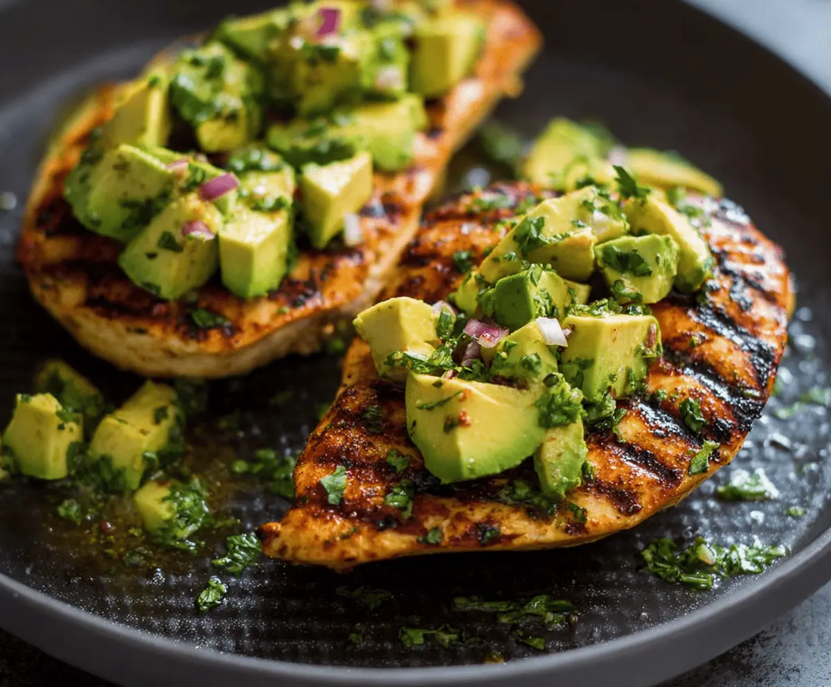 I love making this dish when I want something light but still filling. The best part is how easy it is to throw together on a busy weeknight. I usually marinate the chicken with a little lime juice, garlic, and olive oil, then top it with fresh avocado right off the grill—no fuss, all flavor. It’s one of those recipes that feels fancy but doesn’t take much time.