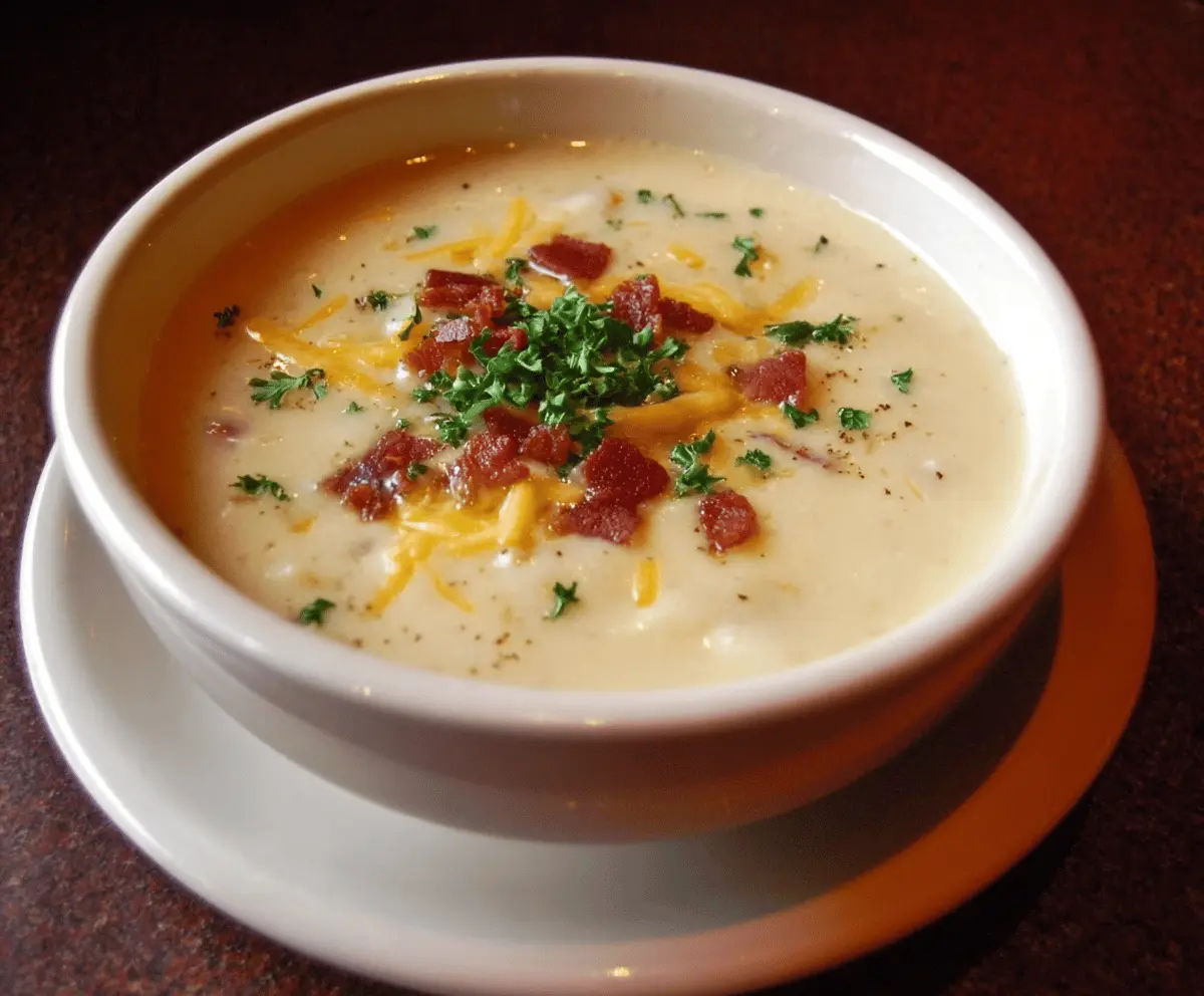 Outback Steakhouse Potato Soup is a creamy, comforting bowl filled with tender chunks of potato, bits of bacon, melted cheddar cheese, and a touch of green onion for a little pop of color and flavor. It’s rich and hearty but still smooth enough to make every spoonful warm you up from the inside out. If you like soups that feel like a big, cozy hug, this one hits the spot perfectly.