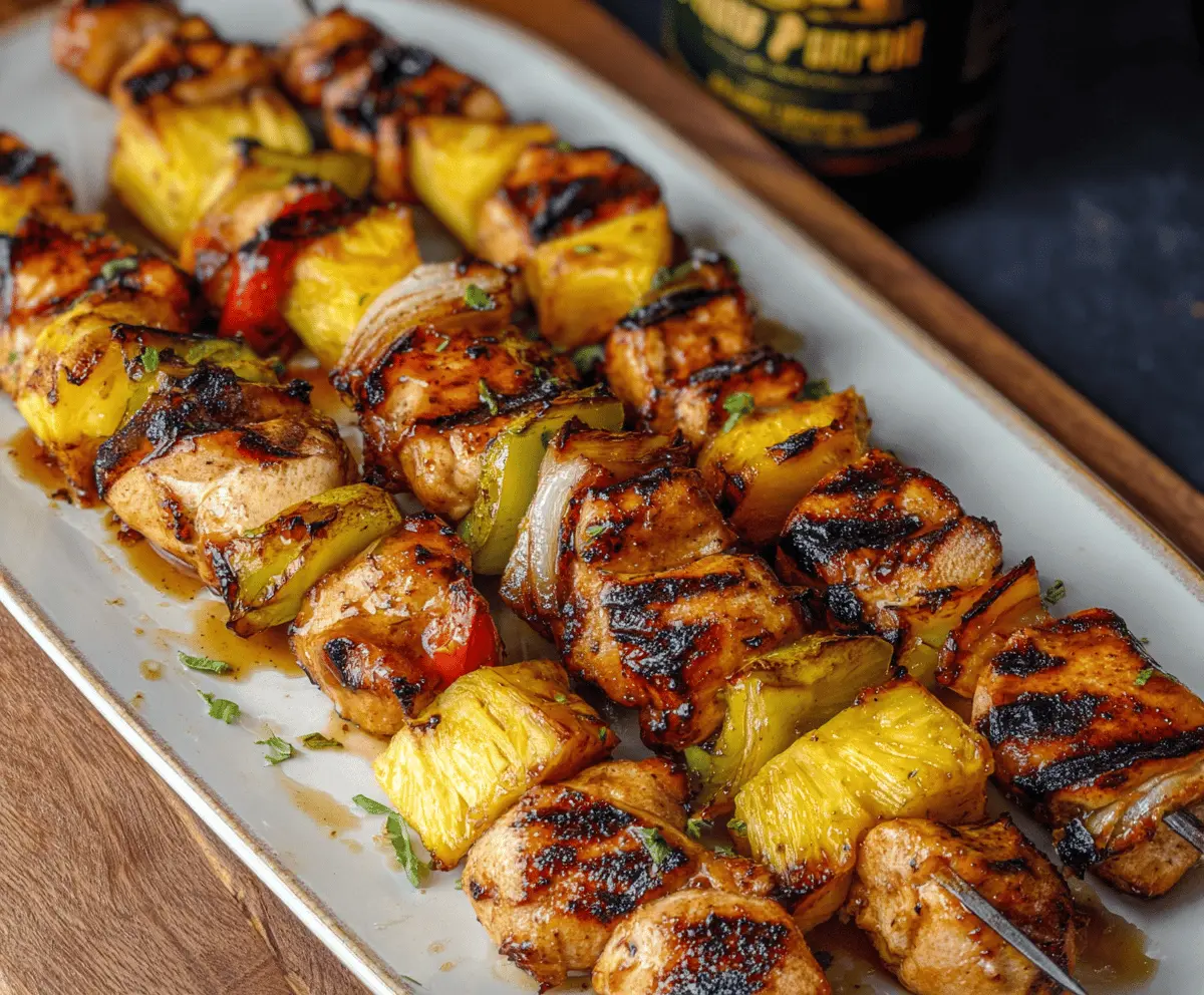 Pineapple Chicken Kabobs are a bright and tasty treat that combines juicy chicken pieces with sweet pineapple chunks, all grilled to perfection. The hint of smoky char from the grill pairs wonderfully with the natural sweetness of the fruit, making every bite a flavorful mix of savory and sweet.