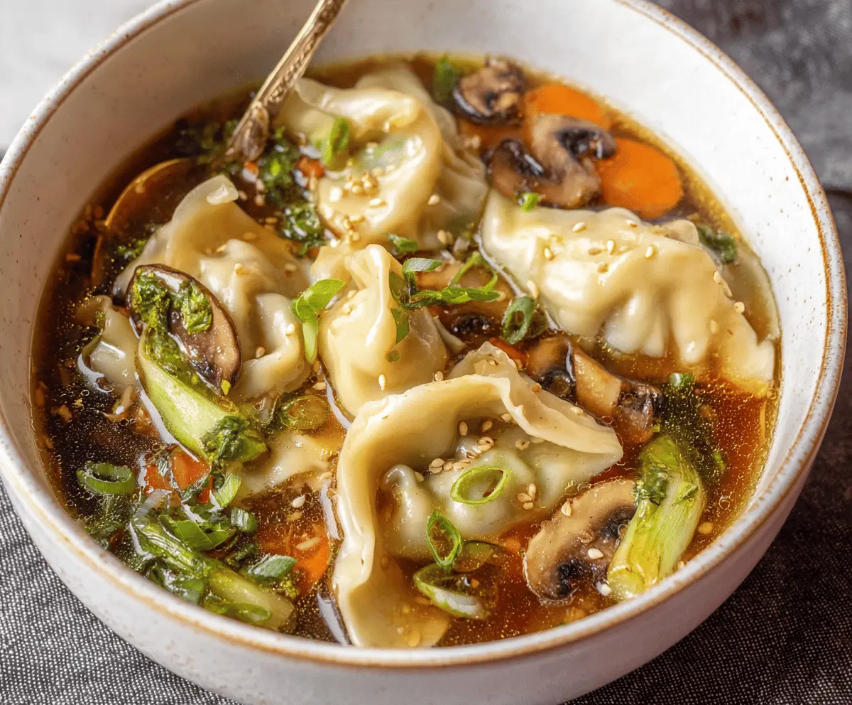 Potsticker Soup is a cozy, comforting bowl filled with plump, tender potstickers, fresh veggies, and a flavorful broth that feels like a warm hug on a chilly day. The chewy dumplings, loaded with savory fillings, float alongside crisp greens and a splash of soy sauce, making every spoonful a wonderful mix of textures and flavors.