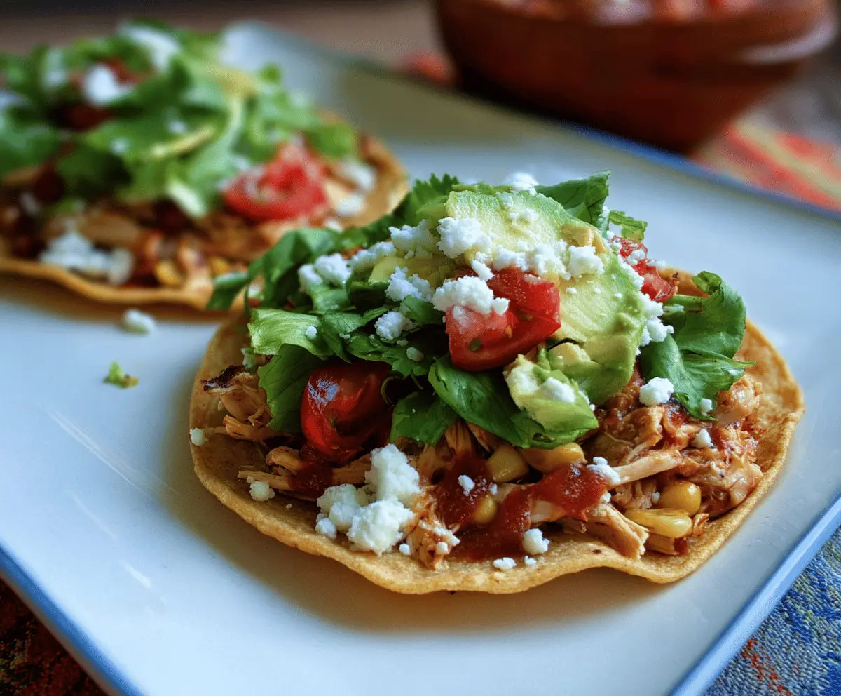 Store leftover chicken, corn, and toppings separately in airtight containers in the fridge for up to 3 days. Keep tostada shells in a sealed bag at room temperature to maintain crunch.